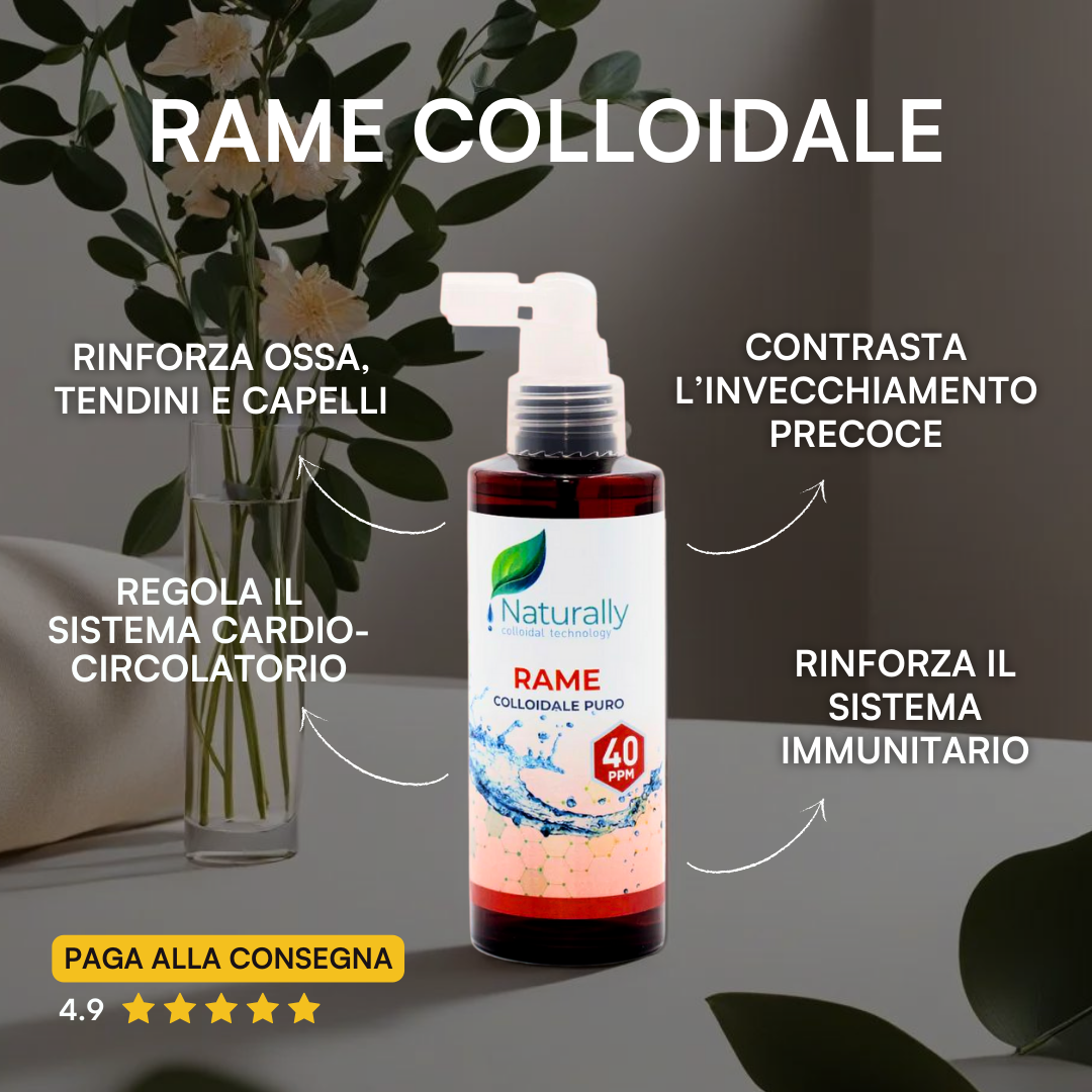 Il rame colloidale è il modo più efficace per reintegrare il rame, poiché viene assorbito dalle mucose orali senza passare per l'intestino, fornendo un'assimilazione rapida ed efficiente. Una corretta alimentazione è la base per il benessere del nostro corpo, ma a volte non riusciamo a soddisfare il nostro fabbisogno giornaliero din utrienti essenziali, come il rame.