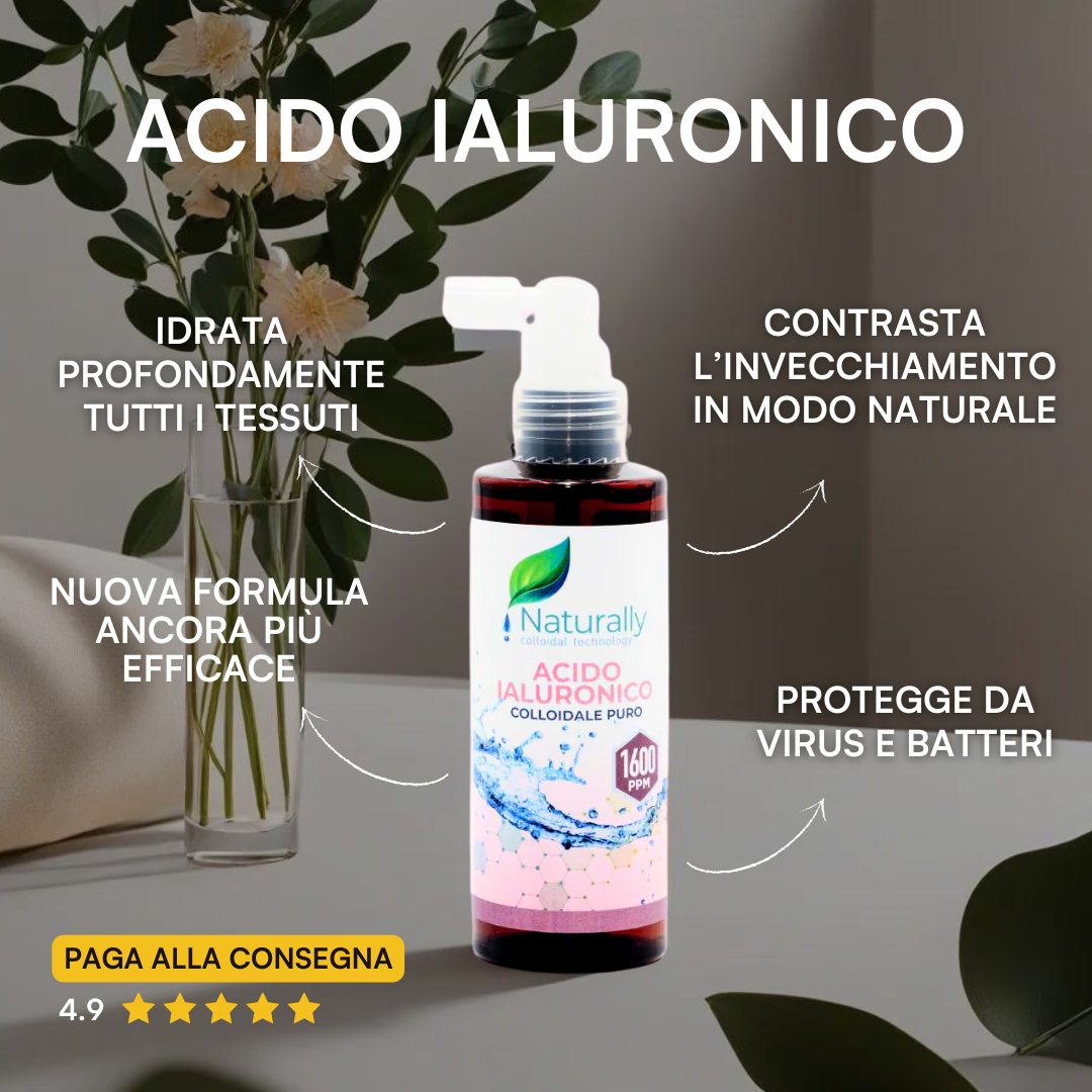 Riscopri il segreto di una pelle radiosa e morbida: l'idratazione costante. Grazie all'acido ialuronico colloidale puro di Naturally, la tua pelle acquisirà una nuova elasticità, diventando meno vulnerabile a irritazioni e lesioni.